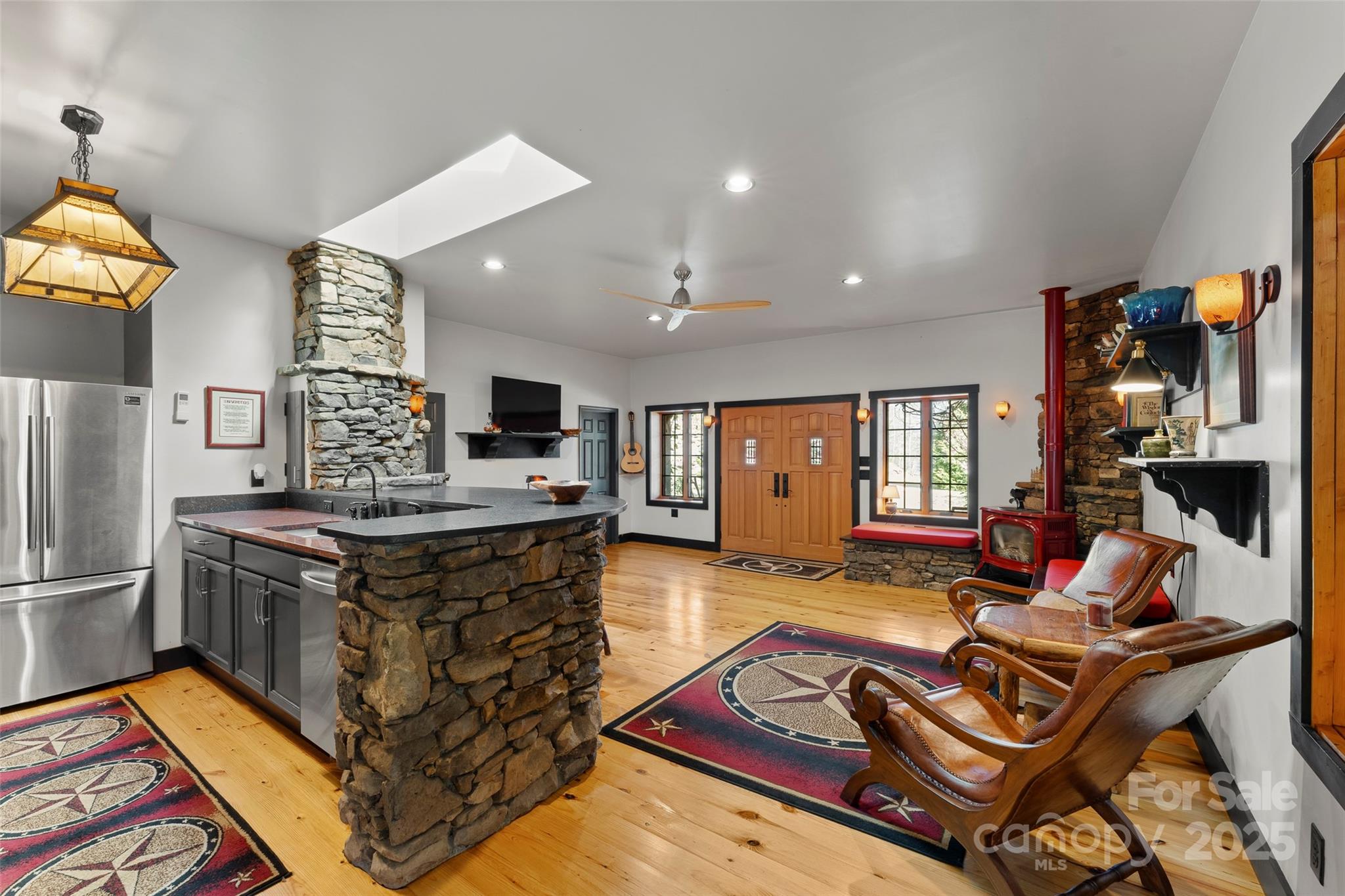 Nestled just under 2 miles from the heart of downtown Brevard, discover the quaint cottage at 800 Elm Bend Road. A true artistic masterpiece crafted by a passionate landscaper, this home is a serene sanctuary, thoughtfully designed with meticulous care and an eye for detail both inside and out. Set on nearly 2 acres, the property boasts custom finishes at every turn, including a bedroom surrounded by windows that bathe the space in natural light, offering views of the lush landscape. The open-concept living and entertainment areas are ideal for both relaxation and hosting intimate gatherings. Beyond the charm of the home itself, the level adjoining green space provides a prime opportunity for an additional dwelling or family compound. Additional features include a man-made waterfall and a wooden fortress, adding to the property's unique details. This is truly a one-of-a-kind home that must be seen to fully appreciate the artistry and thoughtful design woven into every corner.